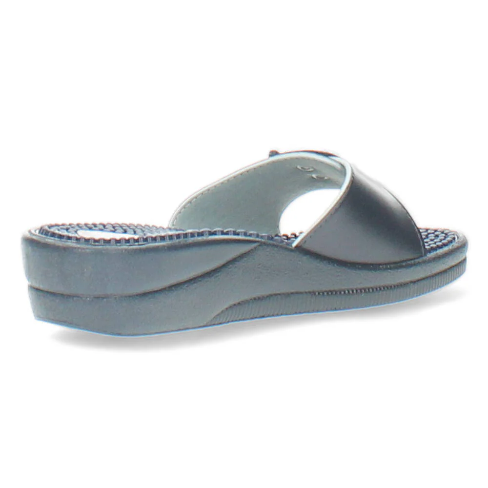 Blauwe slippers met een ergonomische binnenzool .