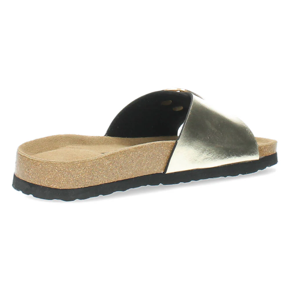 Gouden slippers met een comfortabele binnenzool.